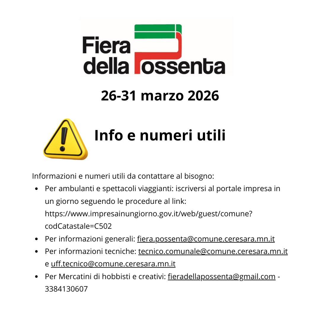 Informazioni e numeri utili per la 75 FIERA DELA POSSENTA -26/31 MARZO 2026