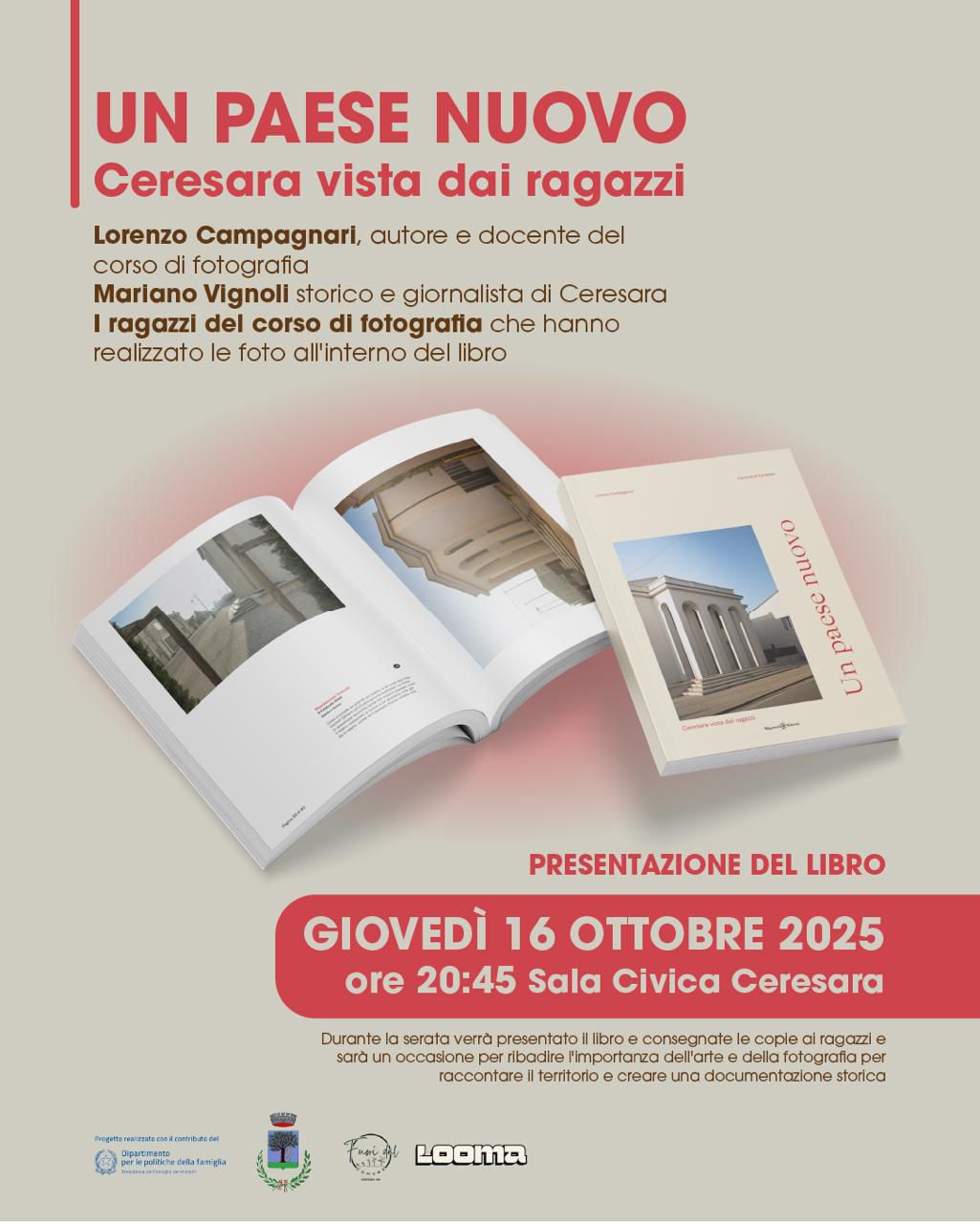 IL GIORNO 16 OTTOBRE SI TERRA' LA PRESENTAZIONE DEL LIBRO "UN PAESE NUOVO" - CERESARA VISTA DAI RAGAZZI PRESSO LA SALA CIVICA CERESARA ALLE ORE 20.45.