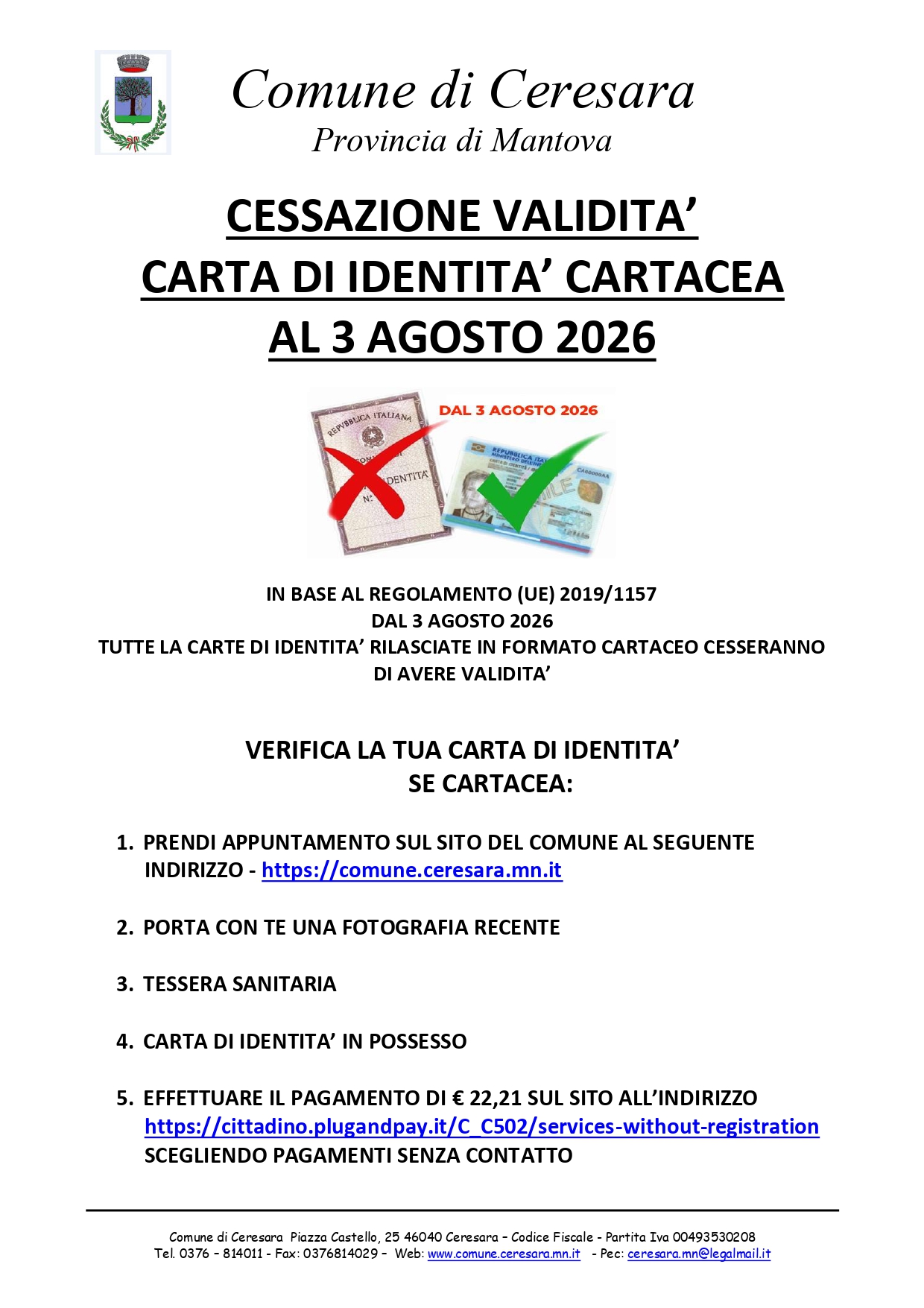 CESSAZIONE VALIDITA’ CARTA DI IDENTITA’ CARTACEA AL 3 AGOSTO 2026